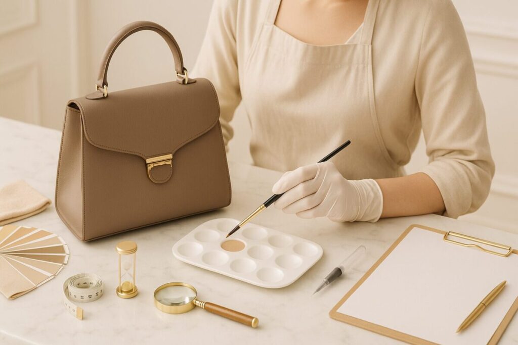 - 対応範囲:角スレやコバ補修から外装フルカラー、持ち手芯交換や内装交換まで幅広く対応
